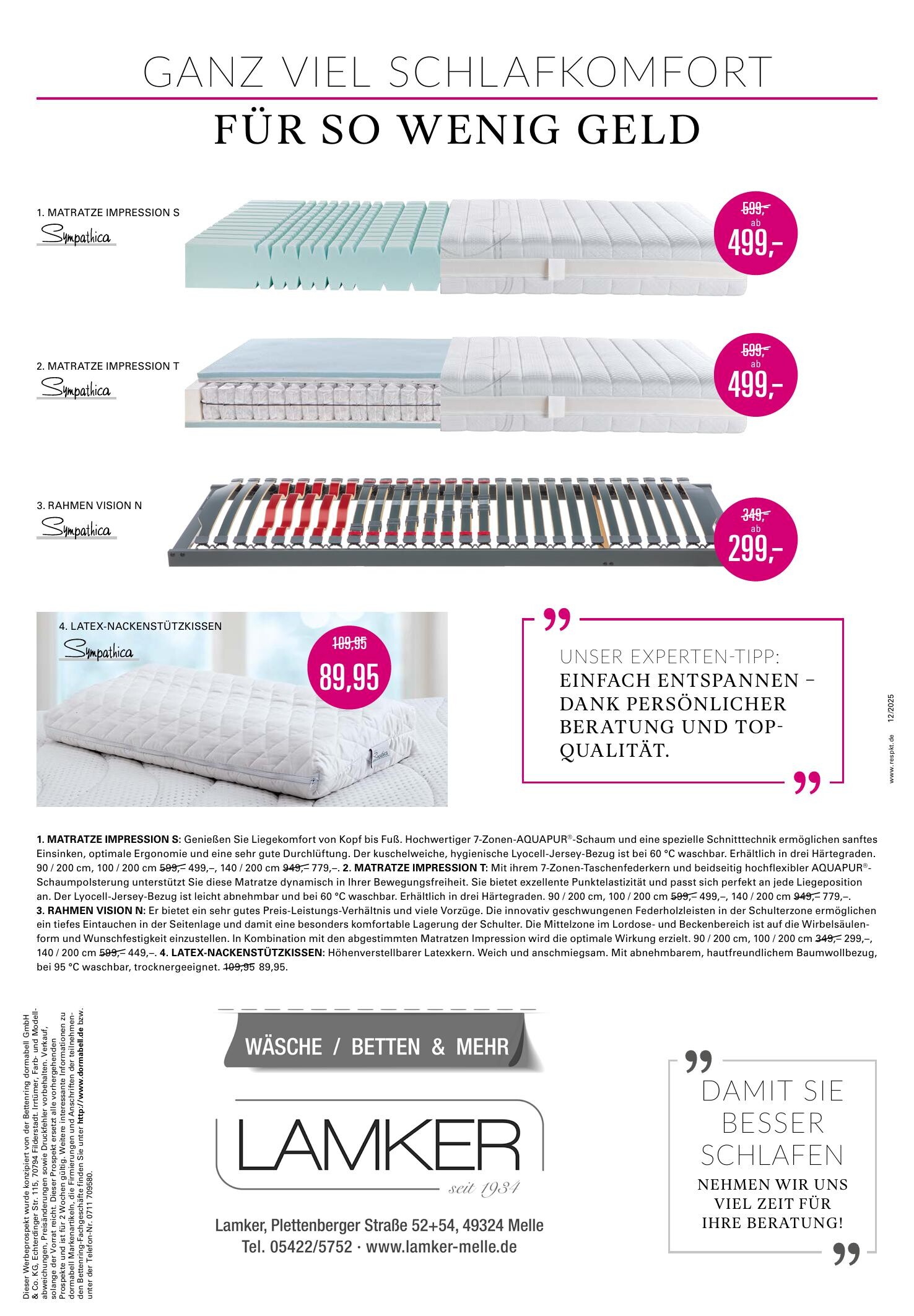 Die Beratung steht bei uns im Mittelpunkt. Und wer sich ein Bett kaufen will, sollte Zeit mitbringen. Zeit nehmen wir uns im dormabell Bettenfachgeschäft, denn ein neues Bett kauft kaum jemand mal eben im Vorübergehen. Im Gespräch finden wir heraus, was Sie speziell brauchen. Es gibt viele Fragen: Schlafgewohnheiten, Maße, Gewicht, Beschwerden... Beim individuell angepassten Bett müssen alle Komponenten sorgsam ausgewählt sein und zueinander passen. "Das Maß ist der Mensch", wir vermessen Ihren Körper und stellen mit Ihren Maßen Ihr individuelles Bett zusammen. Danach können Sie die Waren ansehen, anfühlen, vergleichen und vor allem ausgiebig probeliegen - und gut beraten in ruhiger Atmosphäre Ihre Entscheidungen treffen. Nennen Sie uns gerne Ihren Terminwunsch, wir freuen uns auf Sie!